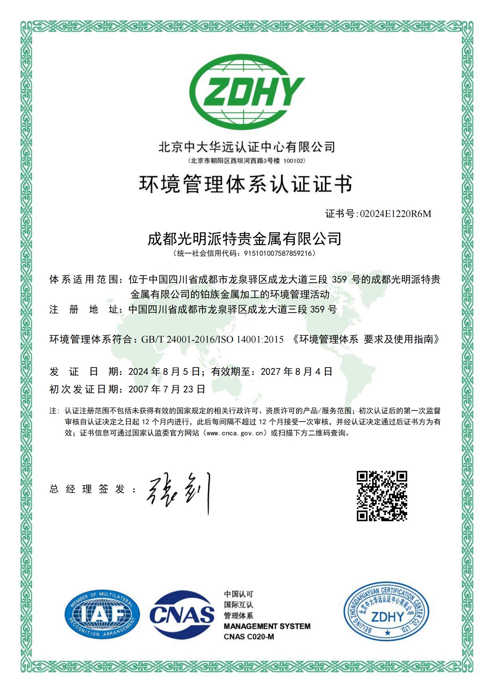 环境管理体系认证