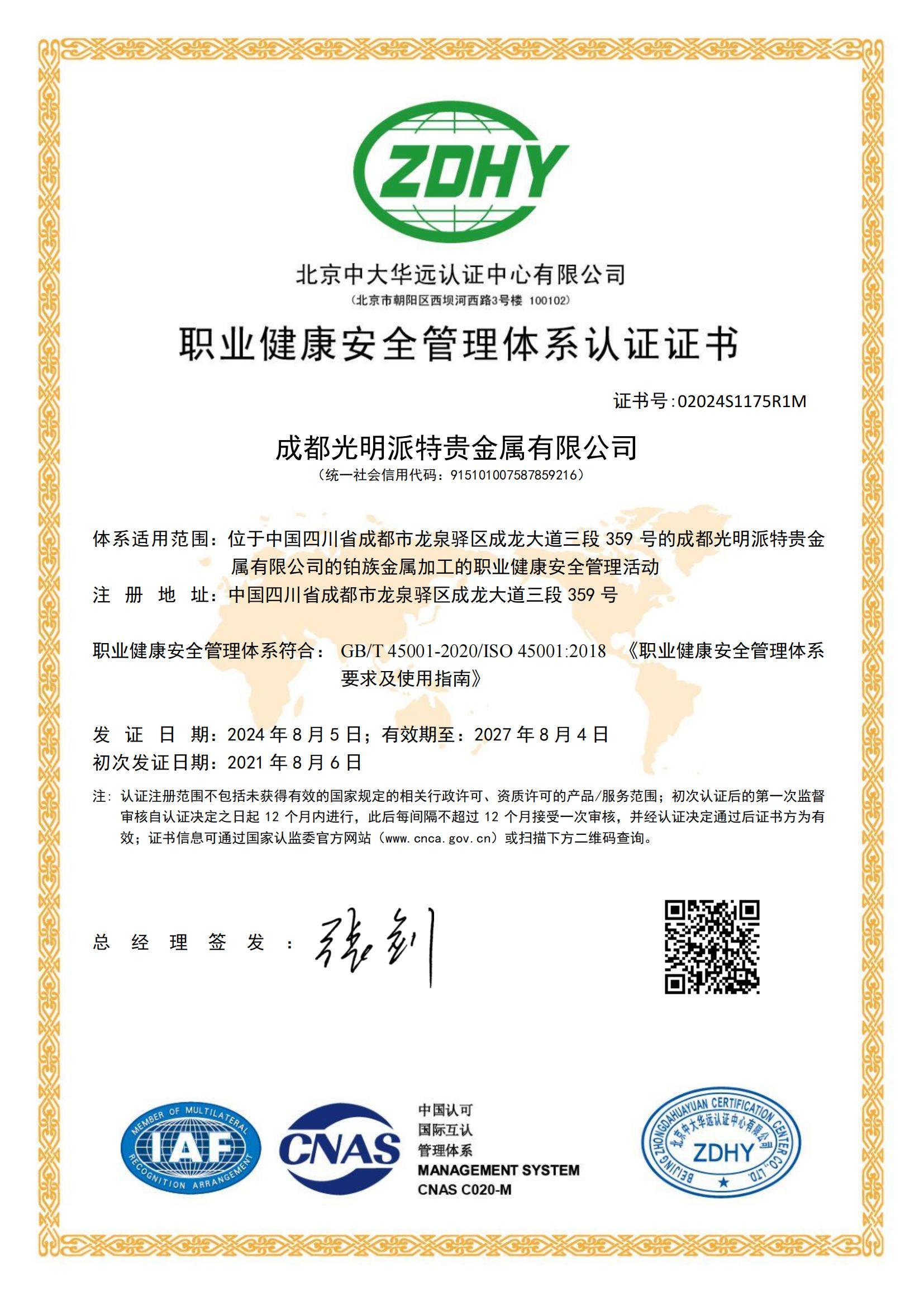 职业健康安全管理体系认证