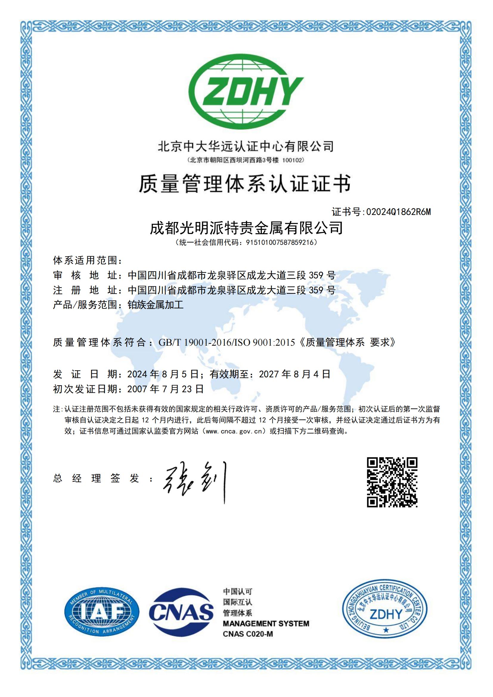 质量管理体系认证